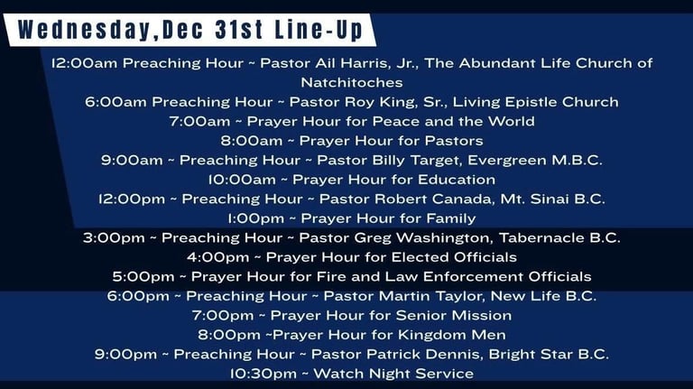 Wednesday, December 31 Service